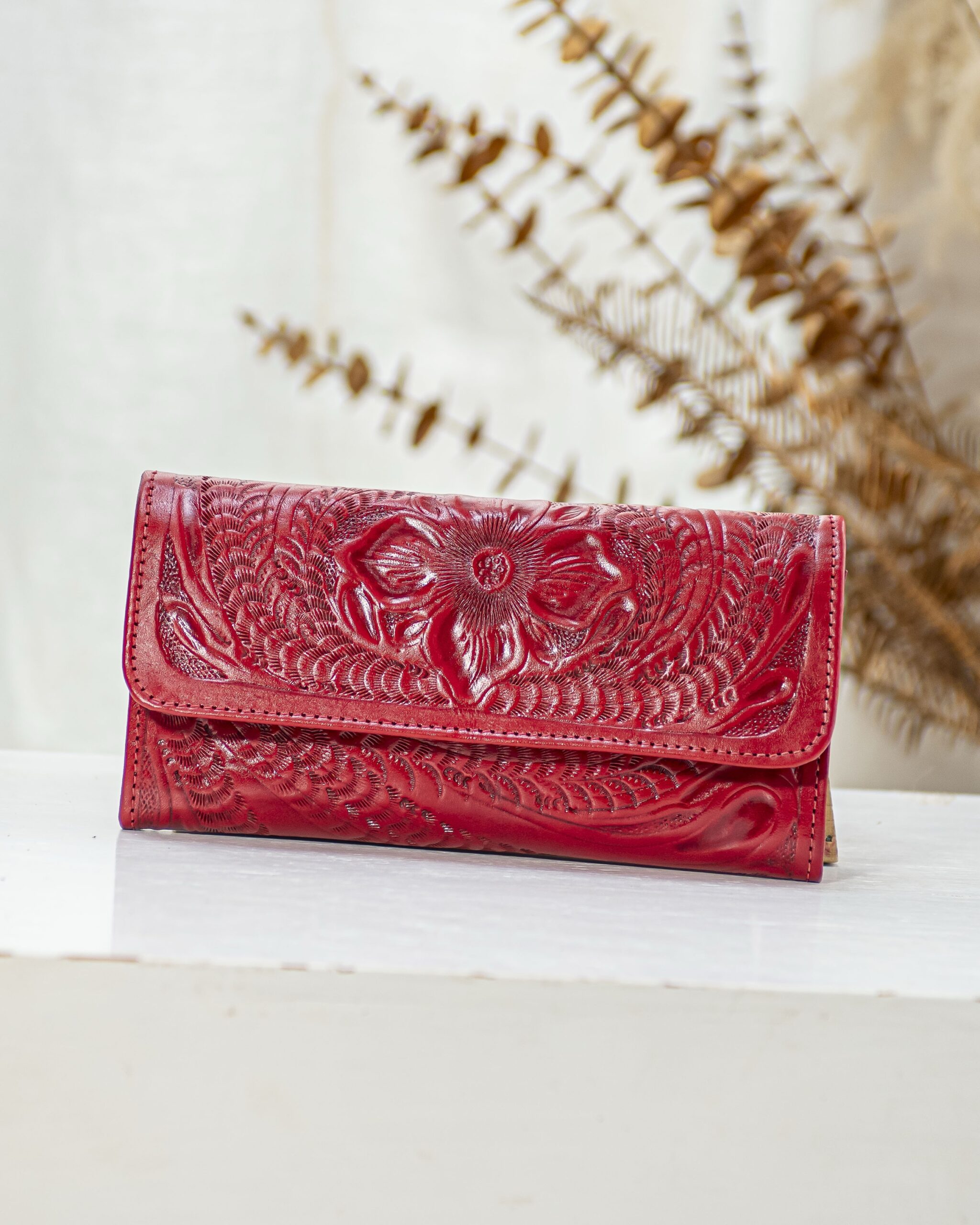 Billetera para dama de cuero repujado