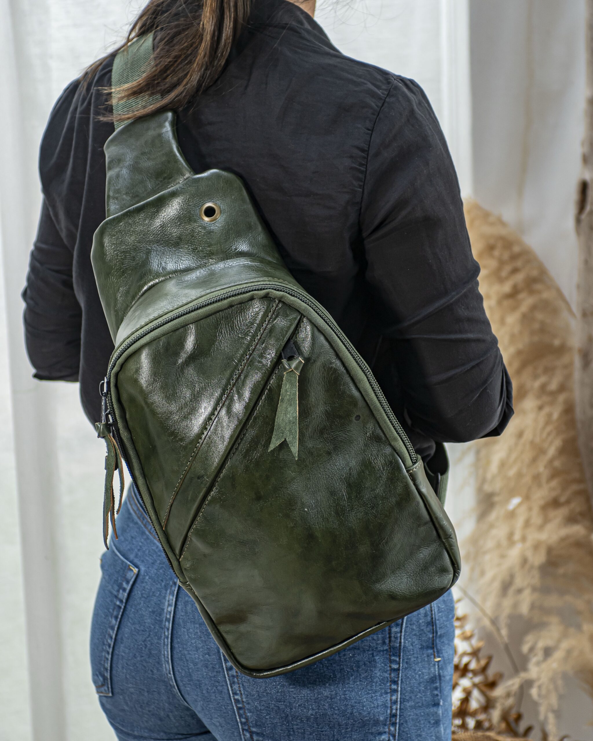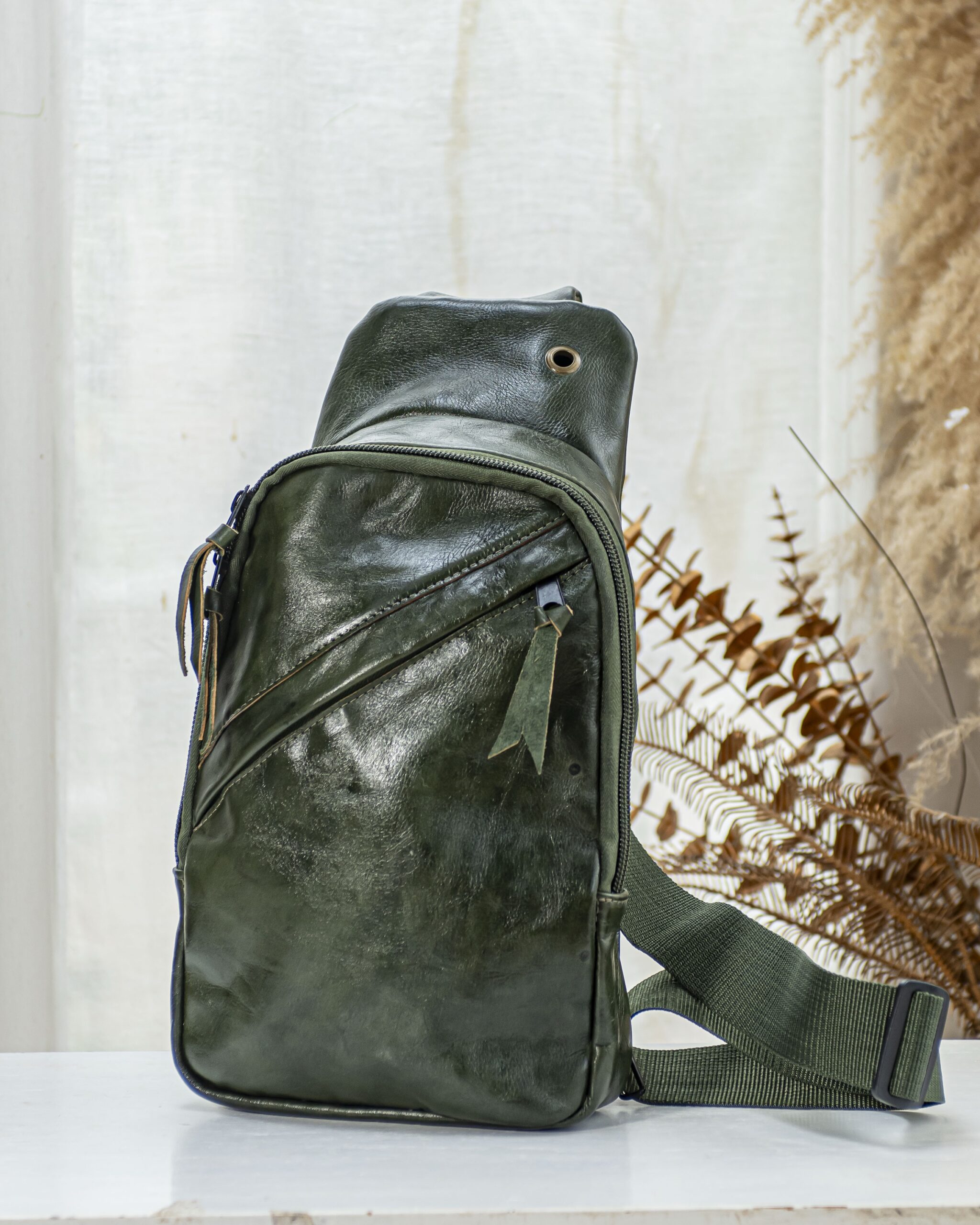con diseño anatómico que se adapta al cuerpo. Presenta un amplio compartimento principal con cierre, bolsillo frontal con detalle en diagonal y correa ajustable para mayor confort. Ideal para quienes buscan practicidad sin perder estilo.